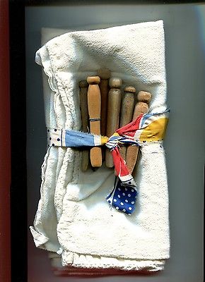 Title (ebay affiliate link): VINTAGE FEEDSACK BAG+WOODEN WOOD CLOTHESPINS~PRIMITIVE COUNTRY FARMHOUSE LAUNDRY
