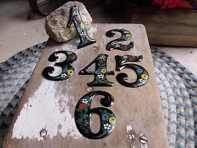 Old Primitive Vintage metal 3" Numbers For Mounting 1-6 Folk Art Painted Flowers
