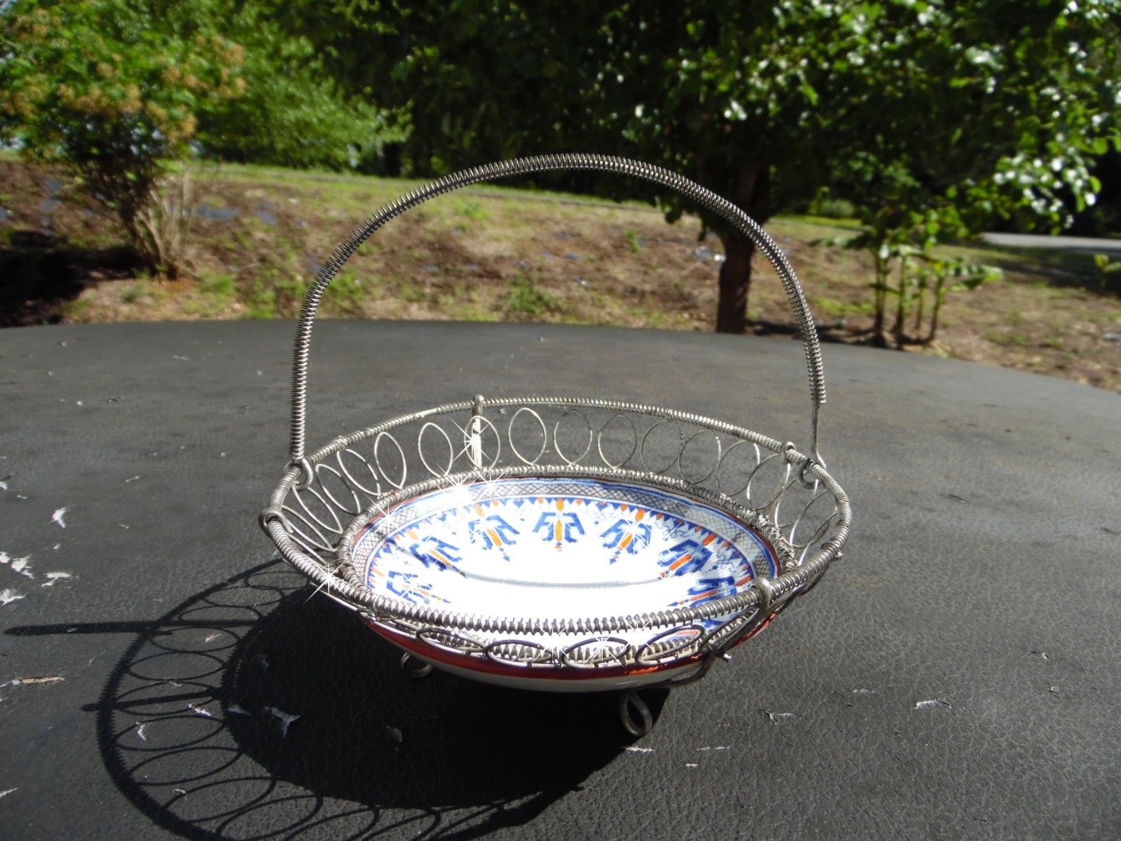 Title (ebay affiliate link): ANTIQUE SARREGUEMINES POTTERY BOWL WIRE EGG BASKET / BOWL
