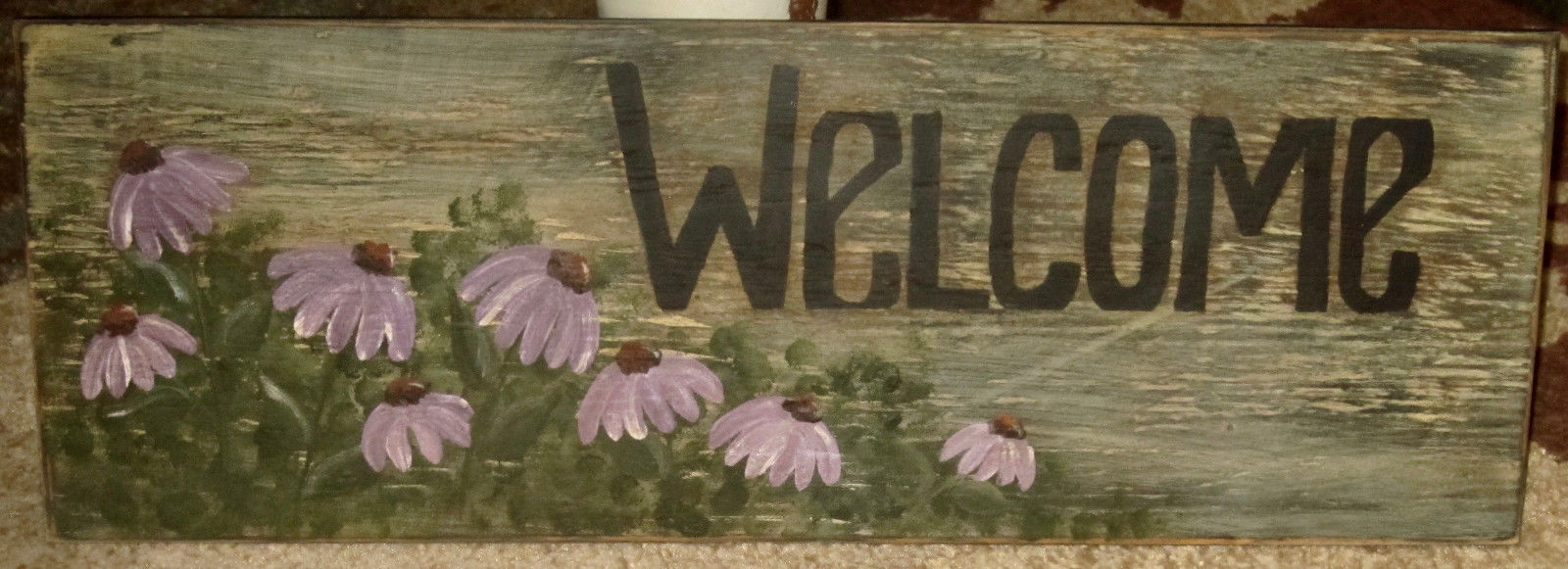 Title (ebay affiliate link): *~*PRIMITIVE*~* HP FOLK ART PRIM "WELCOME" WITH CONEFLOWERS *~* BOARD