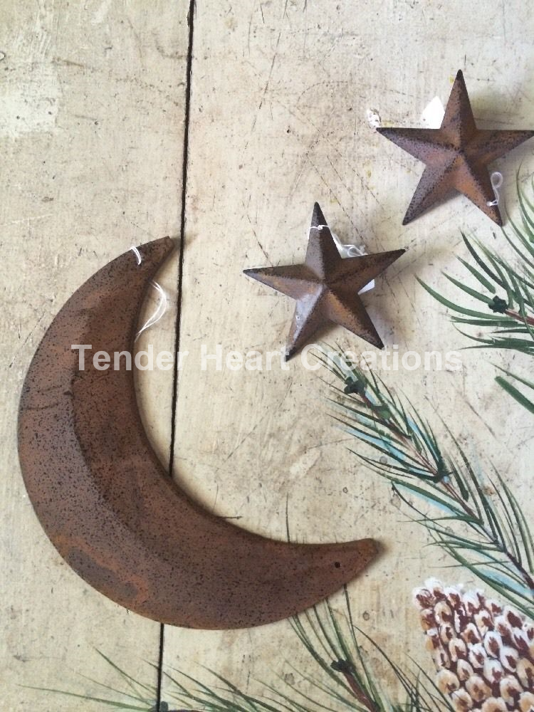 Title (ebay affiliate link): RUSTY BLACK MOON 8" WITH (2) 3" RUST BARN STARS PRIMITIVE COUNTRY CABIN