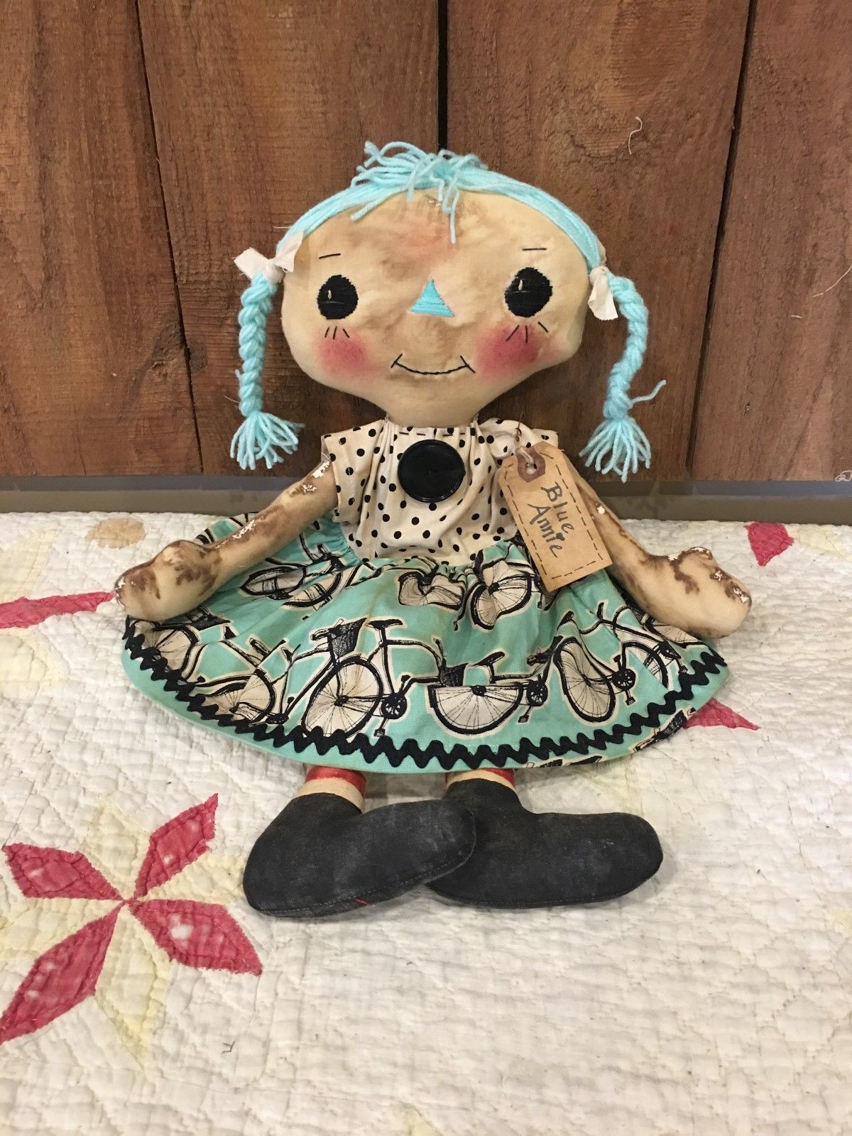 Title (ebay affiliate link): Primitive Blue Annie, folk art, Grungy, Handstitched, PRECIOUS OOAK