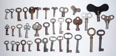 Lot of 36 Vintage Antique BARREL Cabinet CLOCK KEYS