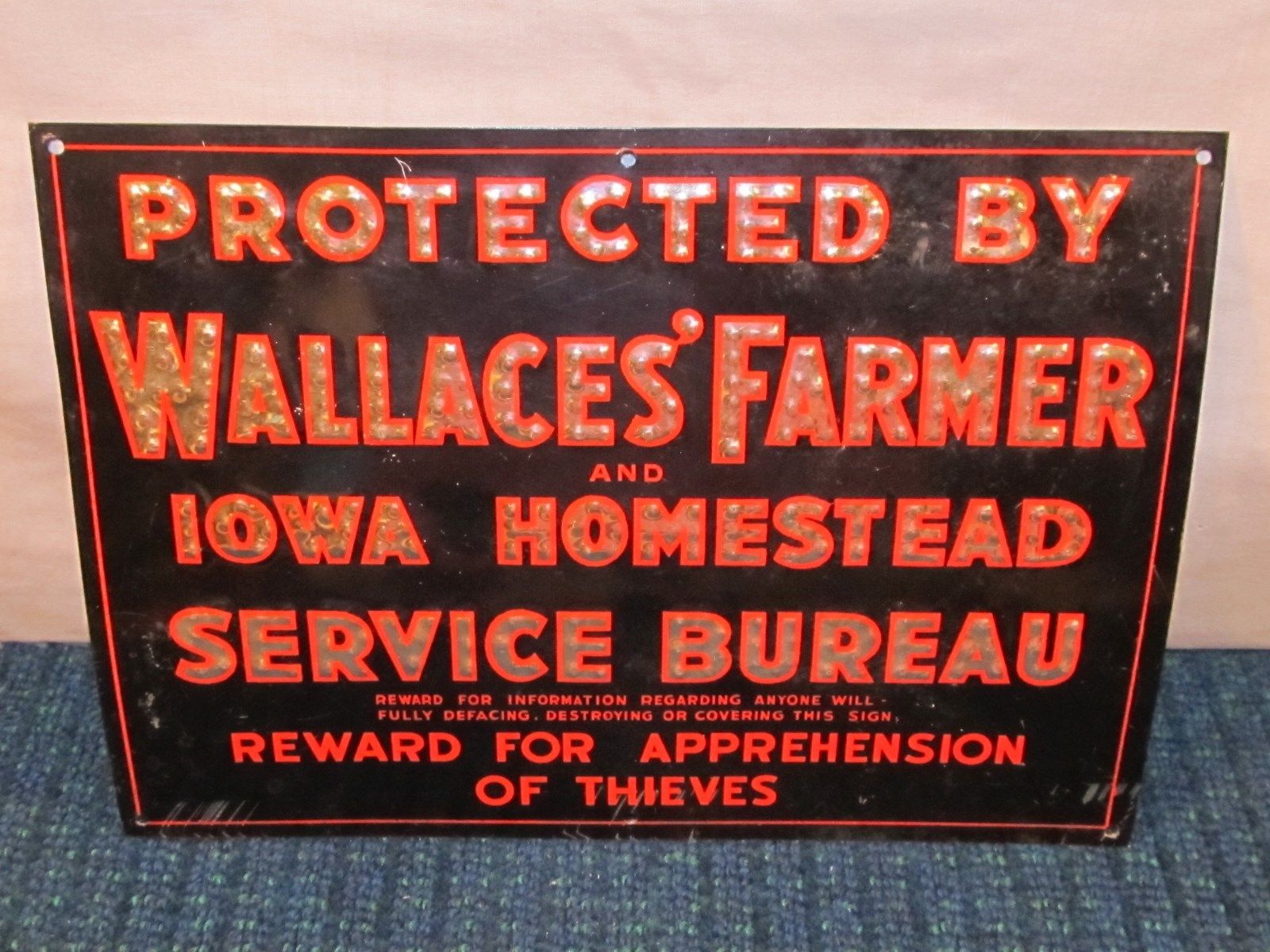 Vintage Wallaces'' Farmer Iowa Homestead Thieves Reward Sign Advertising Farm