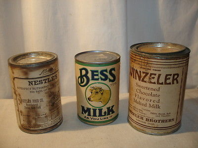 Title (ebay affiliate link): 4 Vintage Food Tins Nestles Invalid & Infants Winzeler Malted Milk & Bess Milk