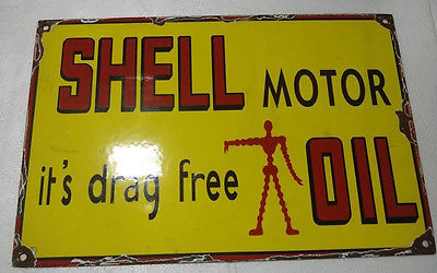 PORCELAIN SIGN SHELL MOTOR OIL 12X8 INCHES APPROX
