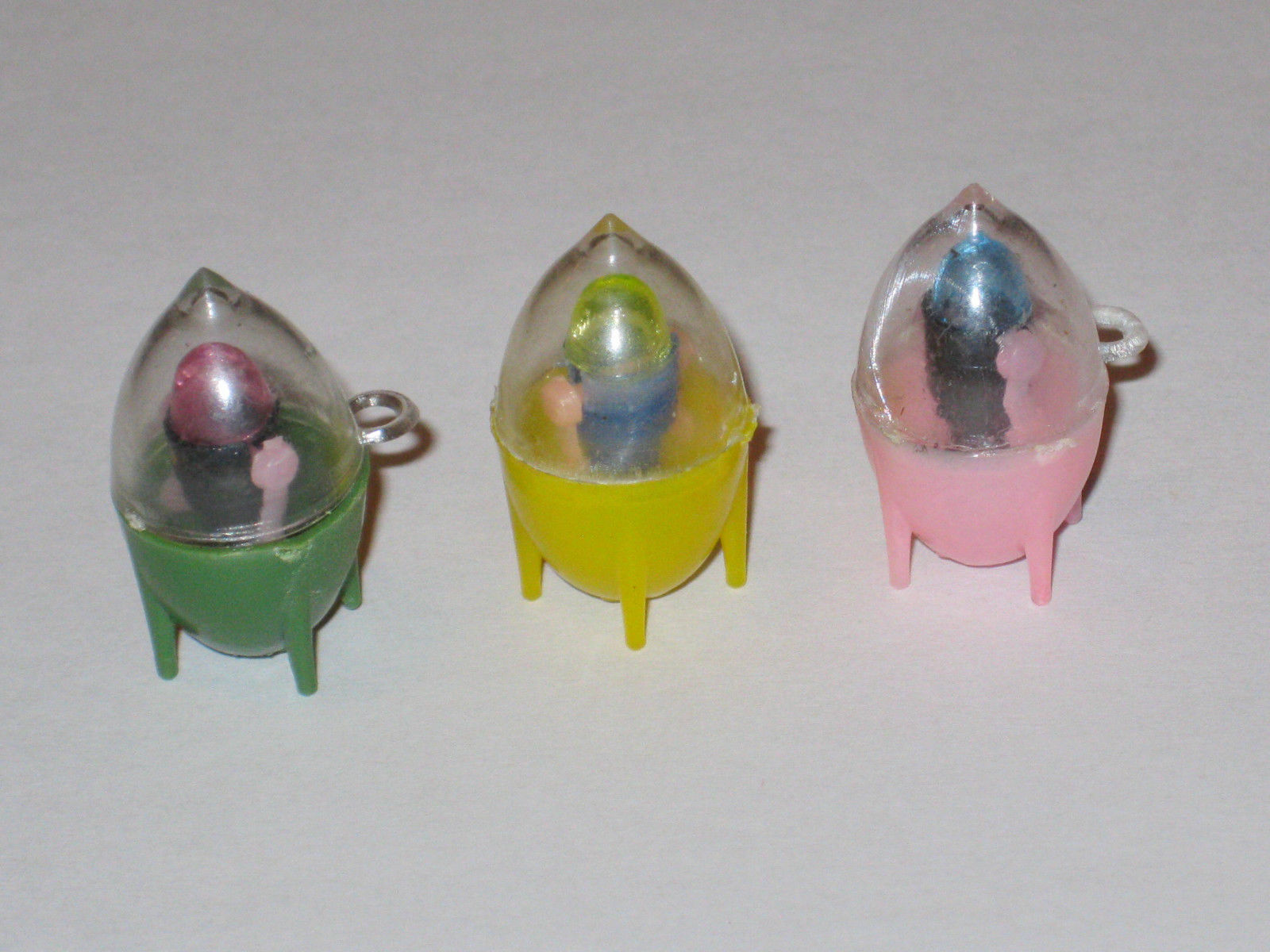 3 rare 1960''s vintage Robby robot rocket spaceship cracker jack gumball charm