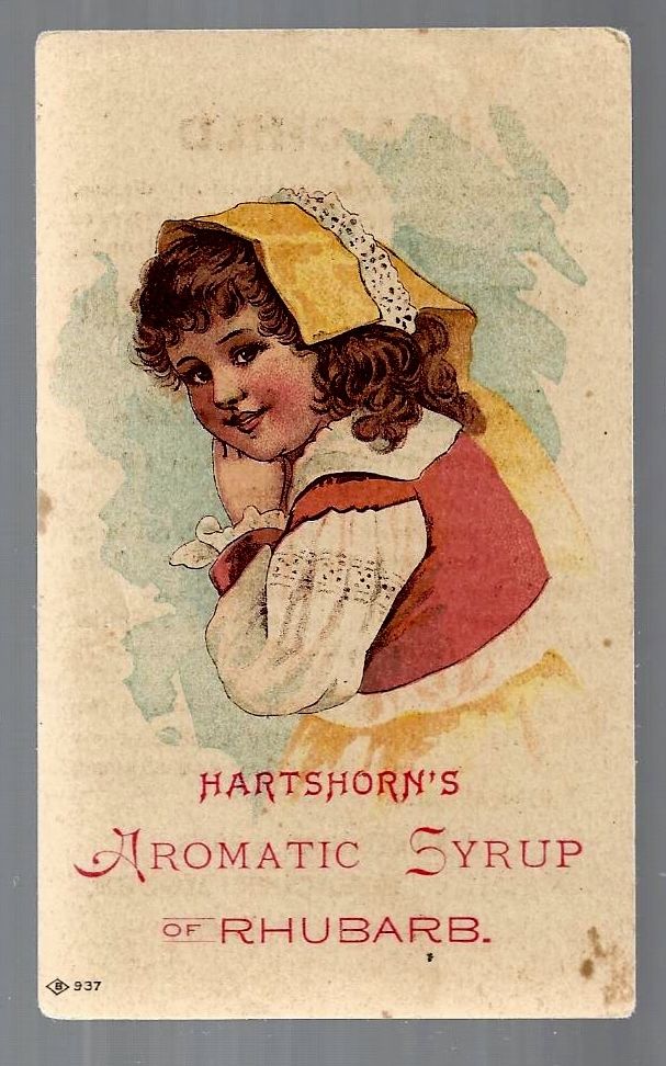 Hartshorn''s Aromatic Syrup Of Rhubarb late 1800''s medicine trade card #A