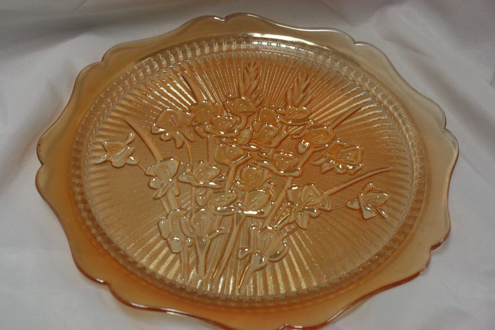 Vintage Jeanette Glass Carnival Iris Herringbone Pattern Cake Plate, 12", NICE
