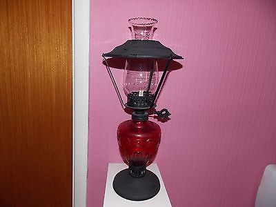 OIL LAMP WITH RED FONT AND CLEAR GLASS FUNNEL