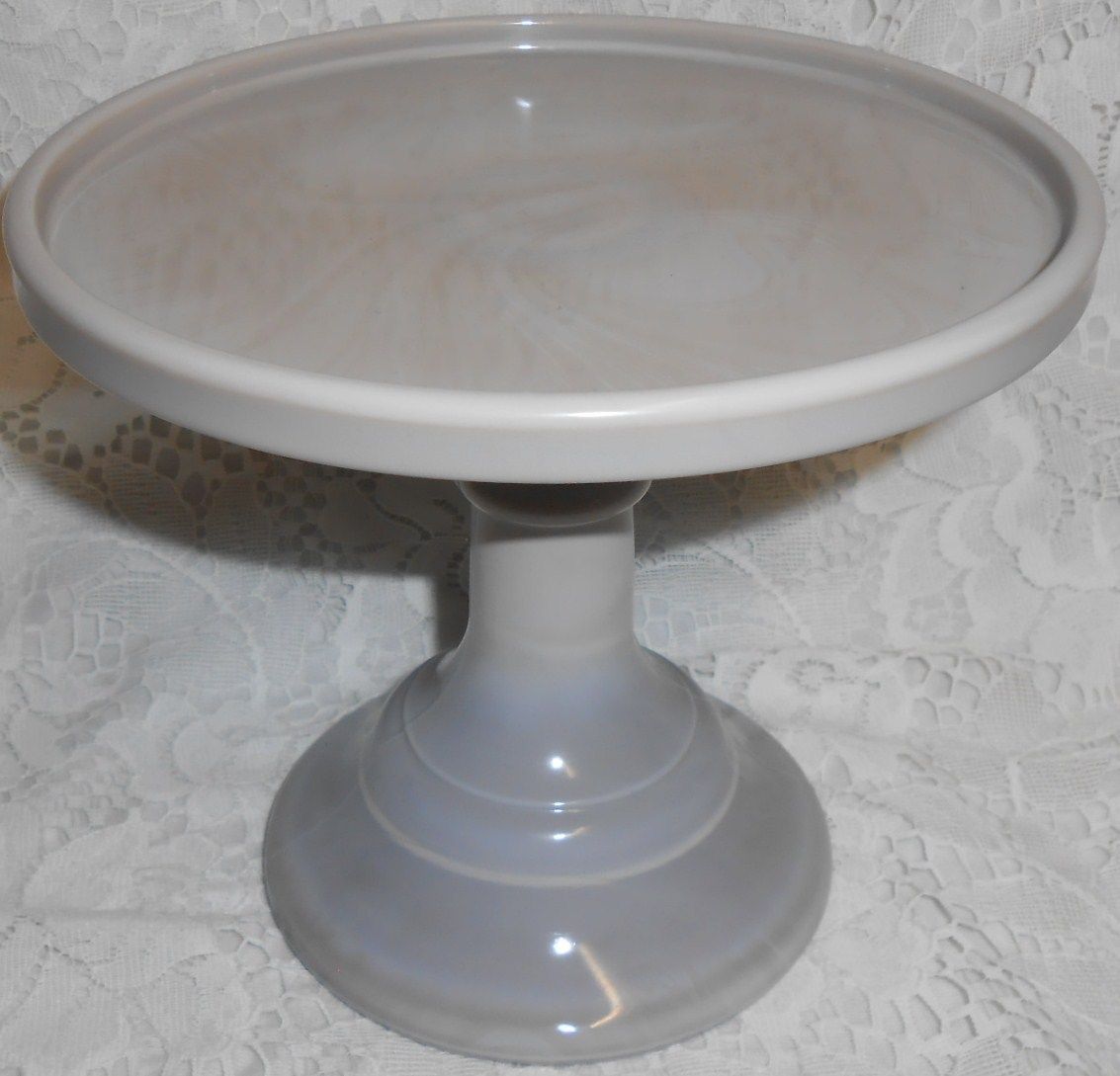 Title (ebay affiliate link): Gray Milk Glass cake serving stand plate platter pedestal raised tray marble art