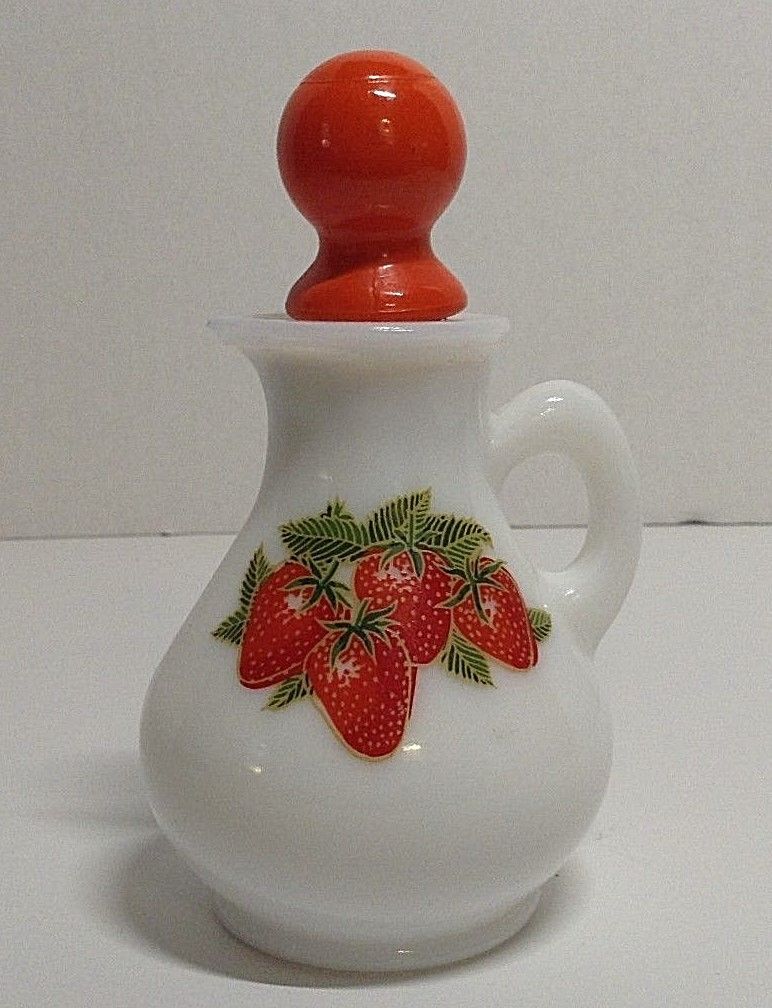 Title (ebay affiliate link): Vintage Avon Cruet Oil / Vinegar Milk Glass Strawberry 5" T