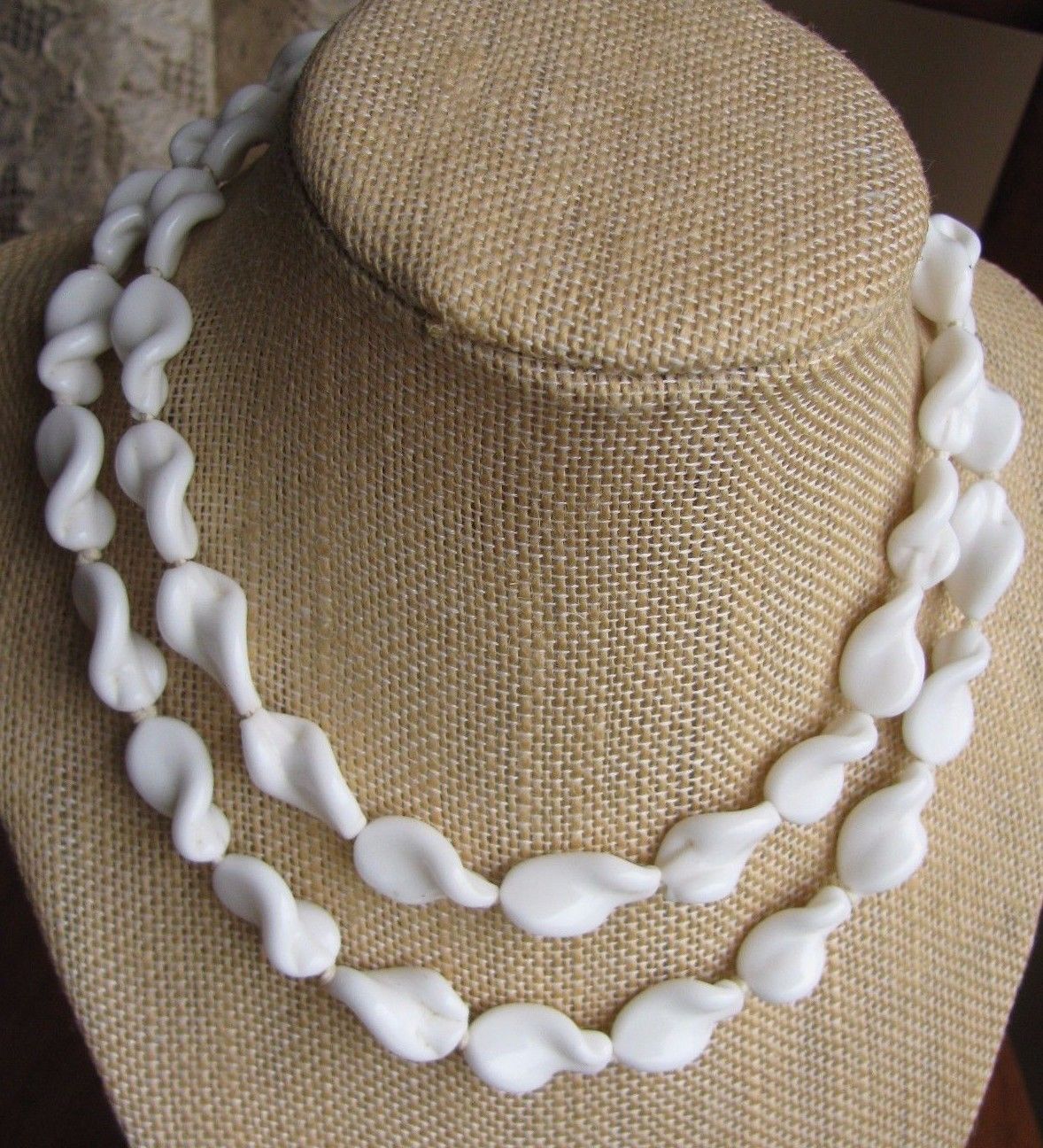 Title (ebay affiliate link): Vintage White MILK GLASS Spiral Bead Multi Strand Choker Necklace JAPAN