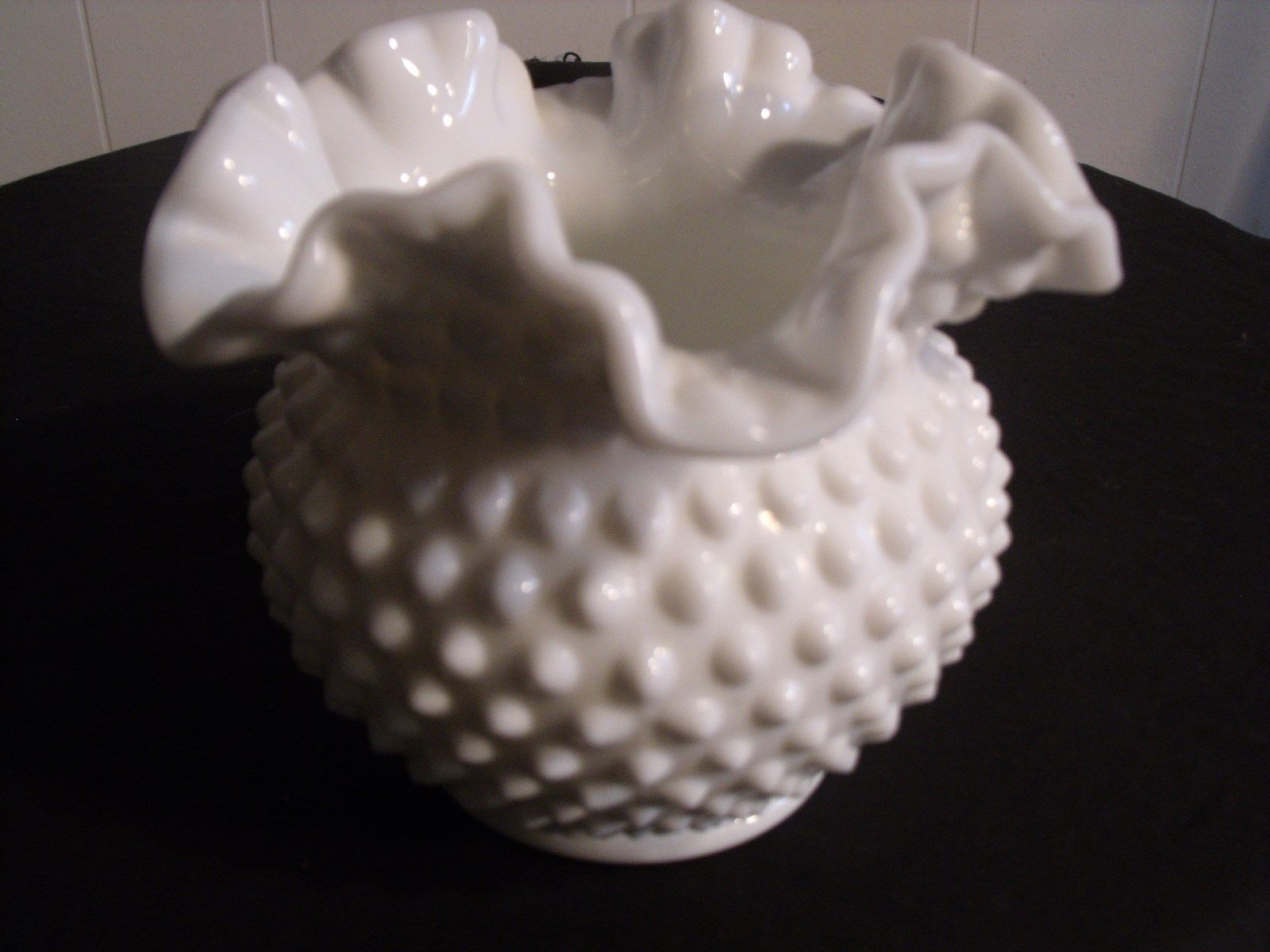 Title (ebay affiliate link): Fenton Hobnail Milk Glass Fluted Vase Bowl 5"H White Mint