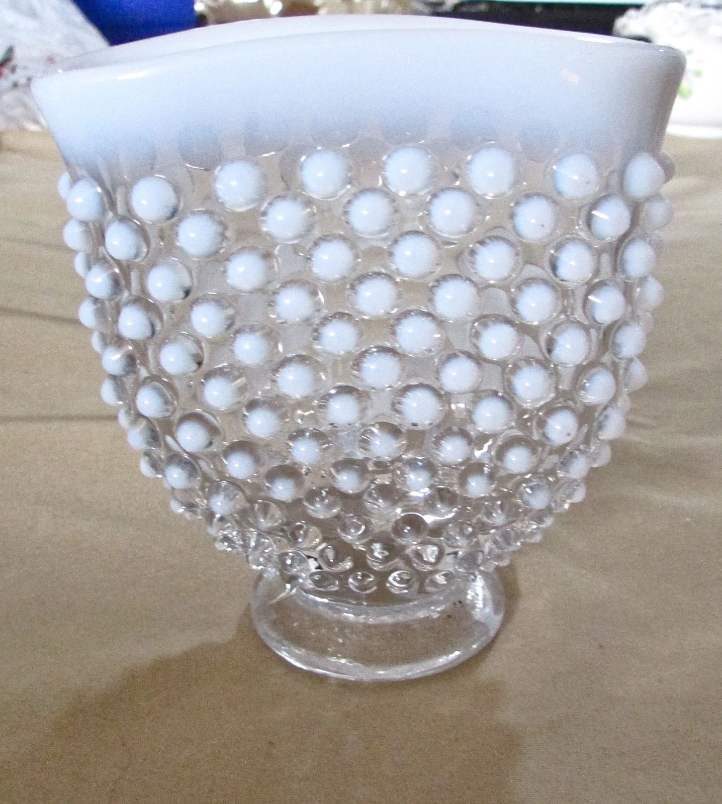 Title (ebay affiliate link): Vintage Fenton Hobnail Milk Glass Vase 3 1/2 x 3 1/2" Mint pink tinge in milk
