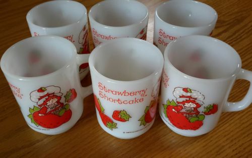 Title (ebay affiliate link): 6 Anchor Hocking Fire King STRAWBERRY SHORTCAKE Mugs 1980''s Milk Glass