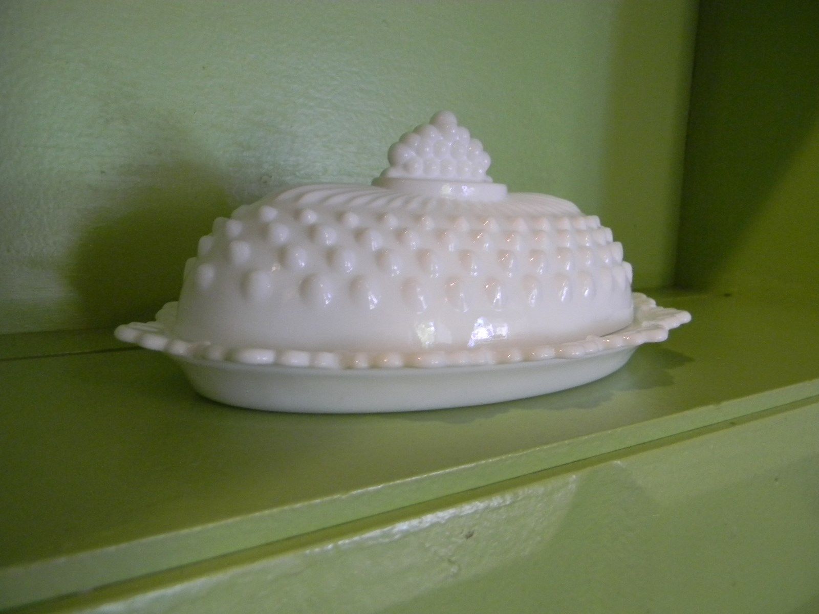 Title (ebay affiliate link): Fenton Hobnail Milk Glass Butter Dish~Scalloped edge~CROWN handle~ BEAUTIFUL!!