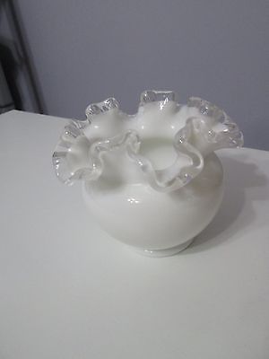 Vintage 40''/ 50''s Fenton unmarked white milk glass w/ clear crimped ruffled edge