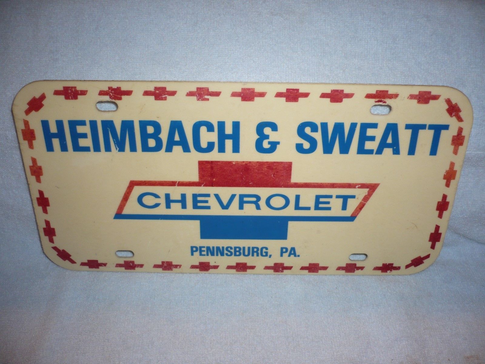 chevrolet dealership fiberglass/plastic license plate pennsburg pa heimbach