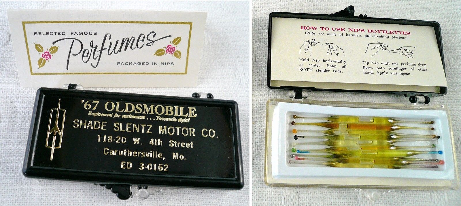 Title (ebay affiliate link): 10 1960s Vintage Asstd Perfume Nips Bottlettes w ''67 Oldsmobile Toronado Case