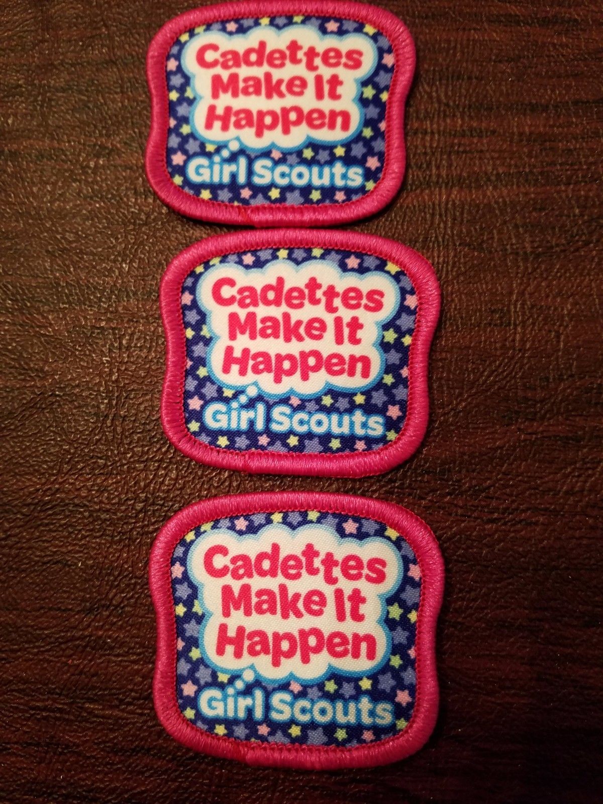 Title (ebay affiliate link): Girl Scouts Cadette fun patch--lot of 3--Cadettes Make it Happen