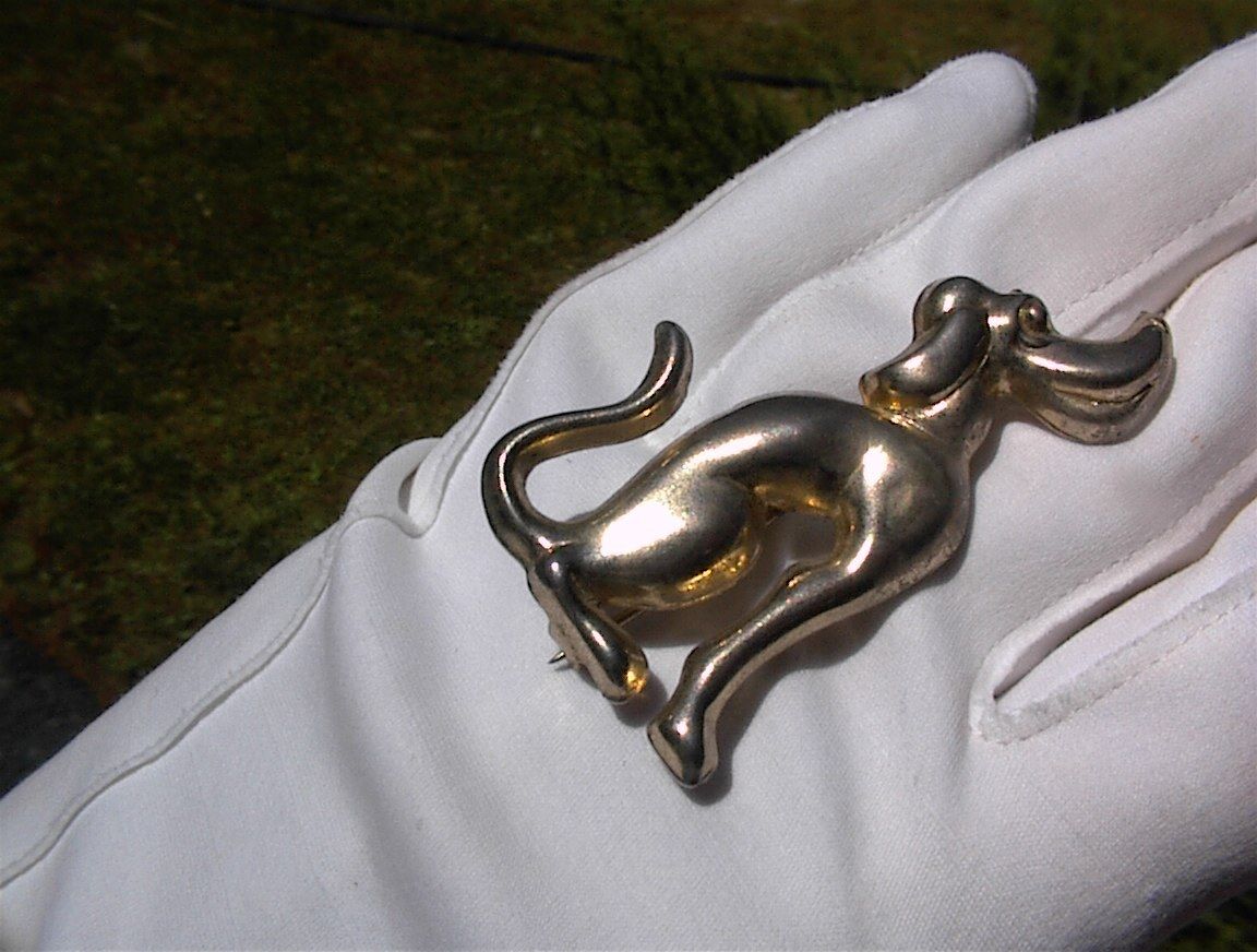 RARE ANTIQUE BRASS GOOFY THE PUPPY DOG ANIMAL FIGURAL BROOCH C-CLASP PIN #L27