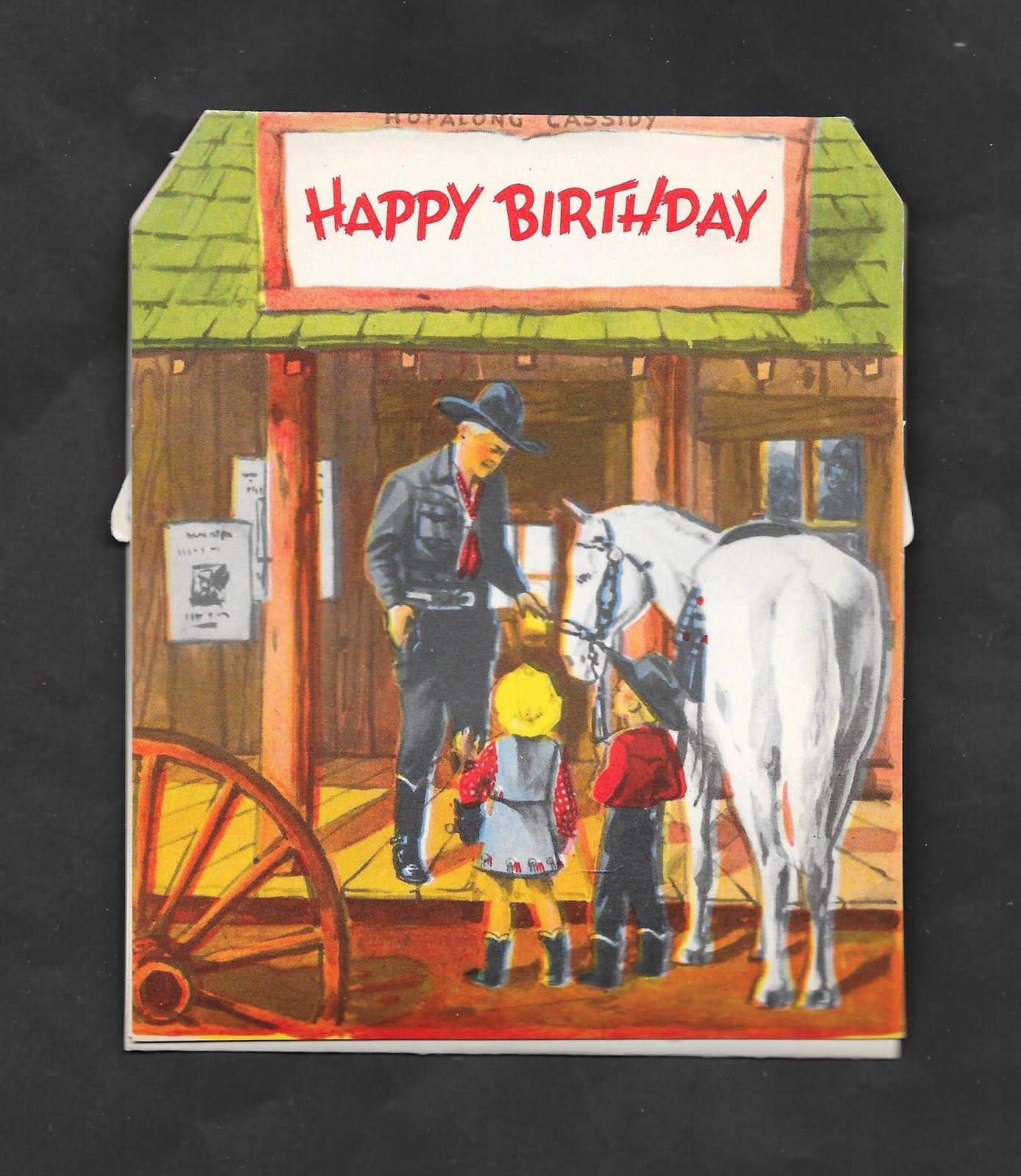 1950''S HOPALONG CASSIDY ORIG BIRTHDAY CARD HOPPY W/ENVELOPE