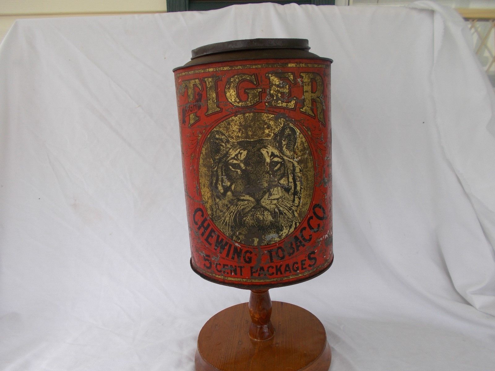 Title (ebay affiliate link): VINTAGE ROUND COUNTRY STORE TIGER CHEWING TOBACCO TIN HELD 48 FIVE CENT PACKS
