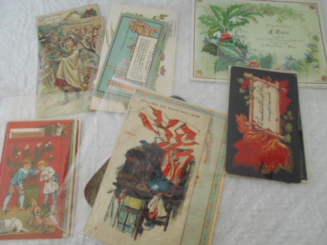 Large lot 42 Antique Victorian Trade Ad Business Cards Shoe Dressing Bells Soap