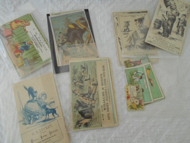 Large lot 48 Antique Victorian Trade Ad Business Cards Shoe Dressing Bells Soap