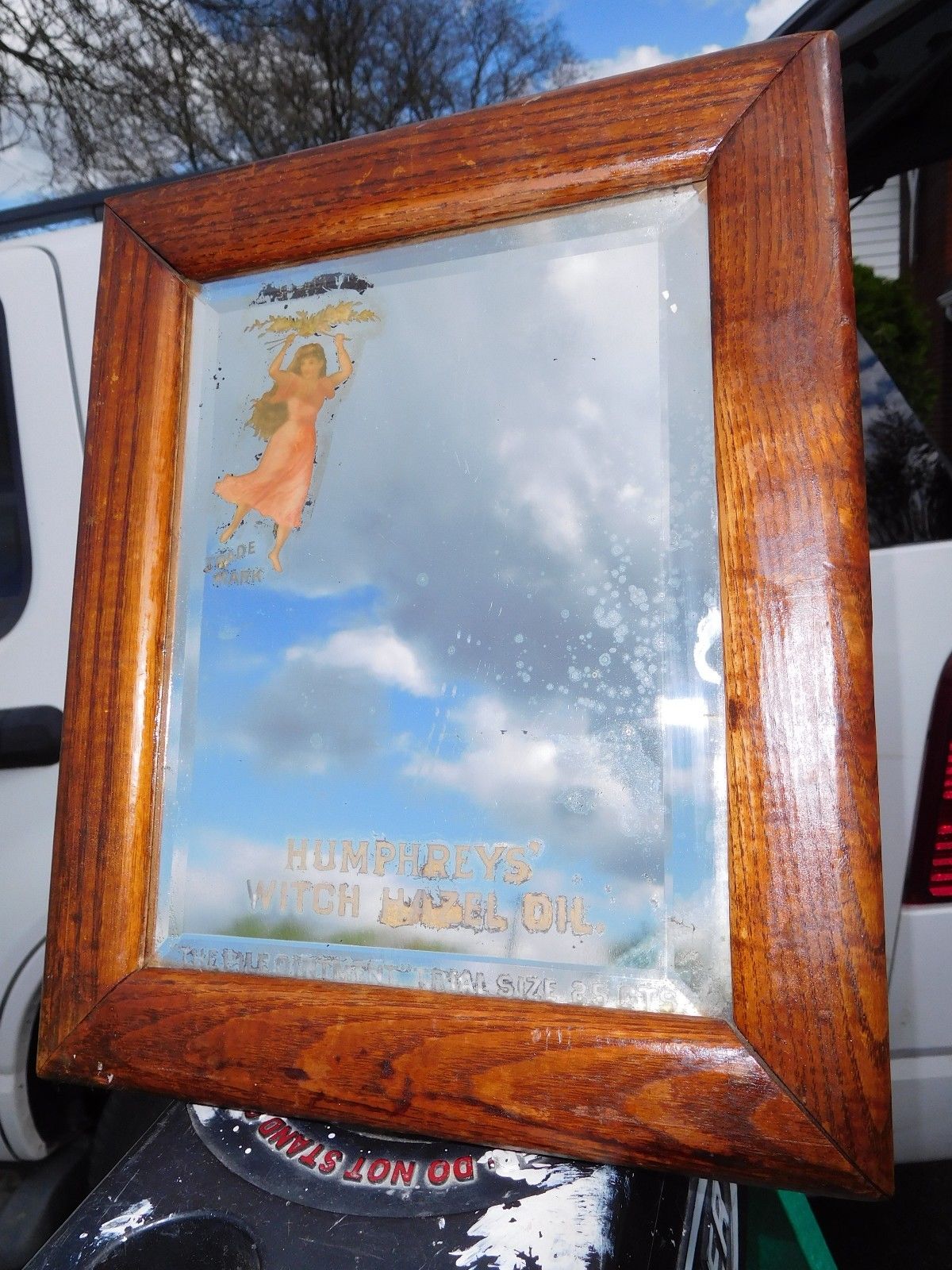 Title (ebay affiliate link): Antique ''Witch Hazel'' Counter-Top Store Display Wood Framed Beveled Mirror