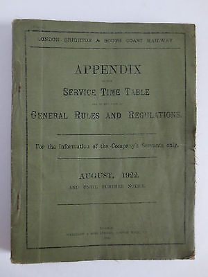 1922 Brighton B&SC Railway Appendix Time Table Timetable Trains Restricted Issue