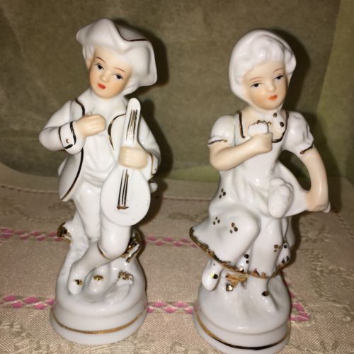 Title (ebay affiliate link): 2PC Vintage,.CAPODIMONTE White /gold trim Boy with Violin and girl with flower