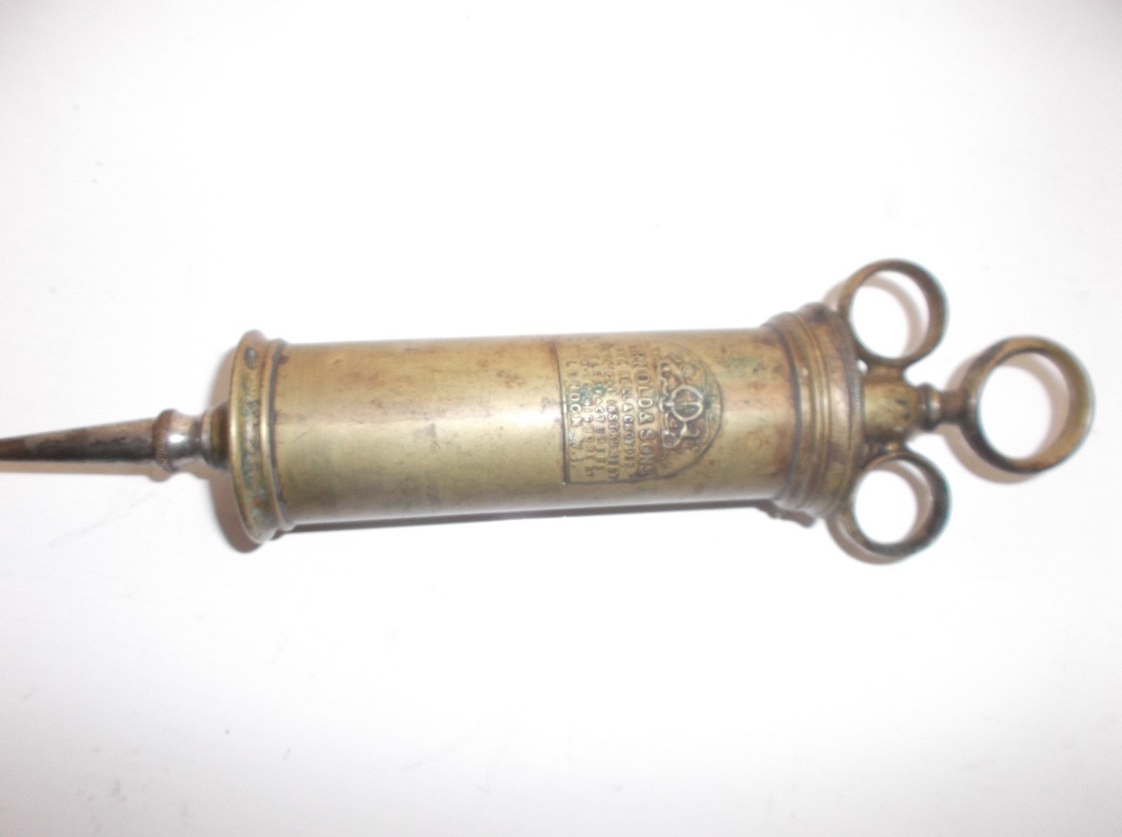 Title (ebay affiliate link): LARGE ARNOLD & SONS JOHN BELL & CROYDEN BRASS SYRINGE