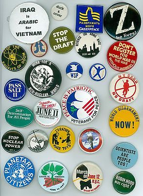 Title (ebay affiliate link): 27 Vintage 1970s-90s Peace & Anti-War Pinback Buttons - World Disarmament Now