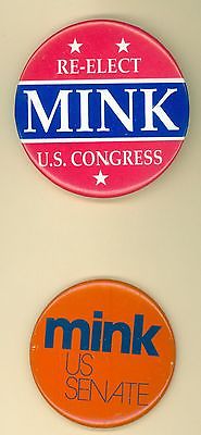 Title (ebay affiliate link): 2 Vintage 1980s Hawaii US Congress Patsy Mink Political Campaign Pinback Buttons