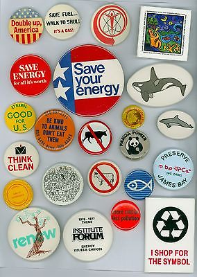 Title (ebay affiliate link): 23 Vintage 1970s-80s Ecology & Earth Day Pinback Buttons - Save Your Energy