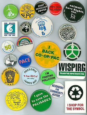 Title (ebay affiliate link): 23 Vintage 70s-90s Ecology & Earth Day Cause Pinback Buttons - Ecology Action