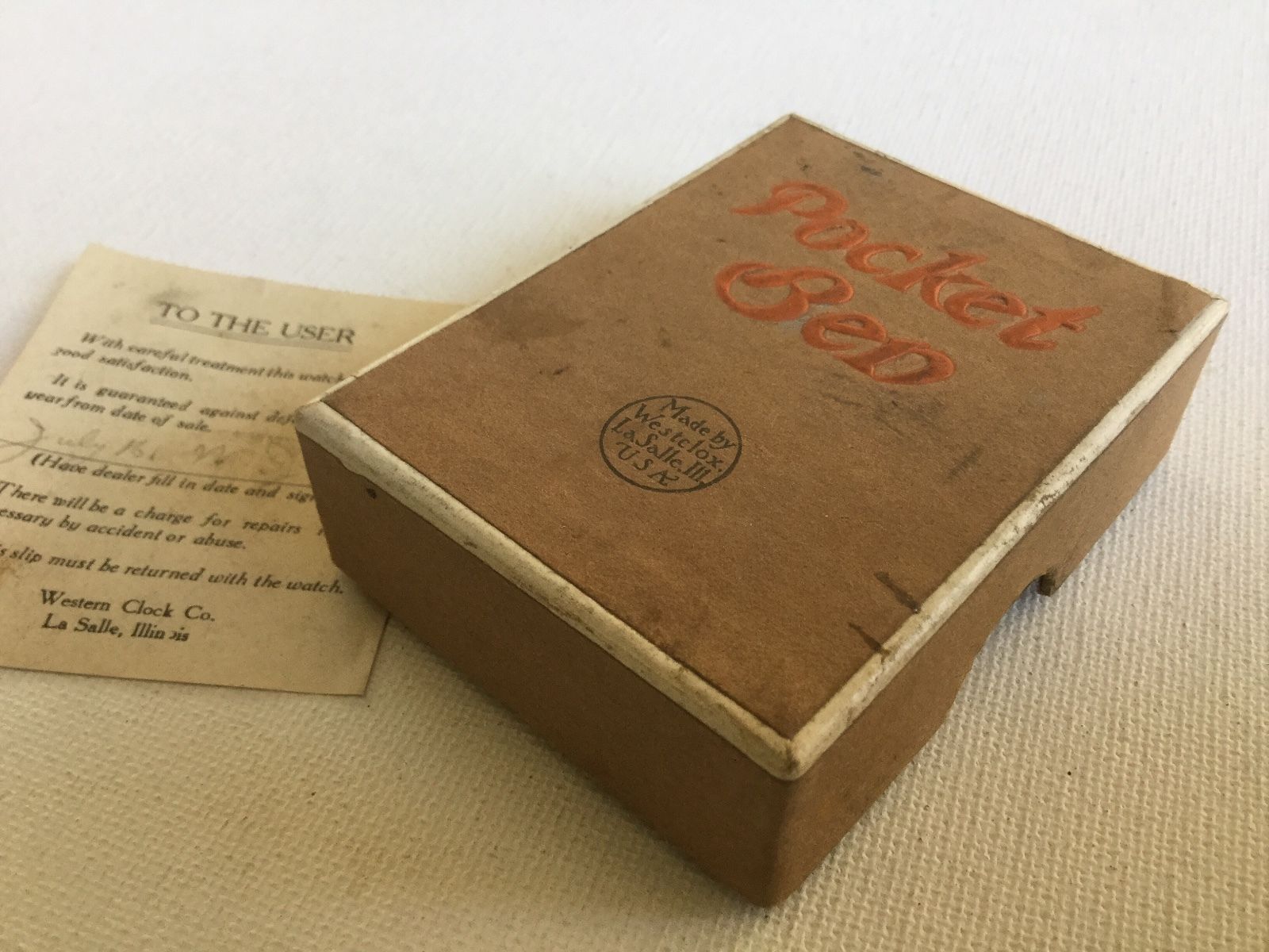 Title (ebay affiliate link): Vintage antique pocket Ben watch box western clock co. Guarantee
