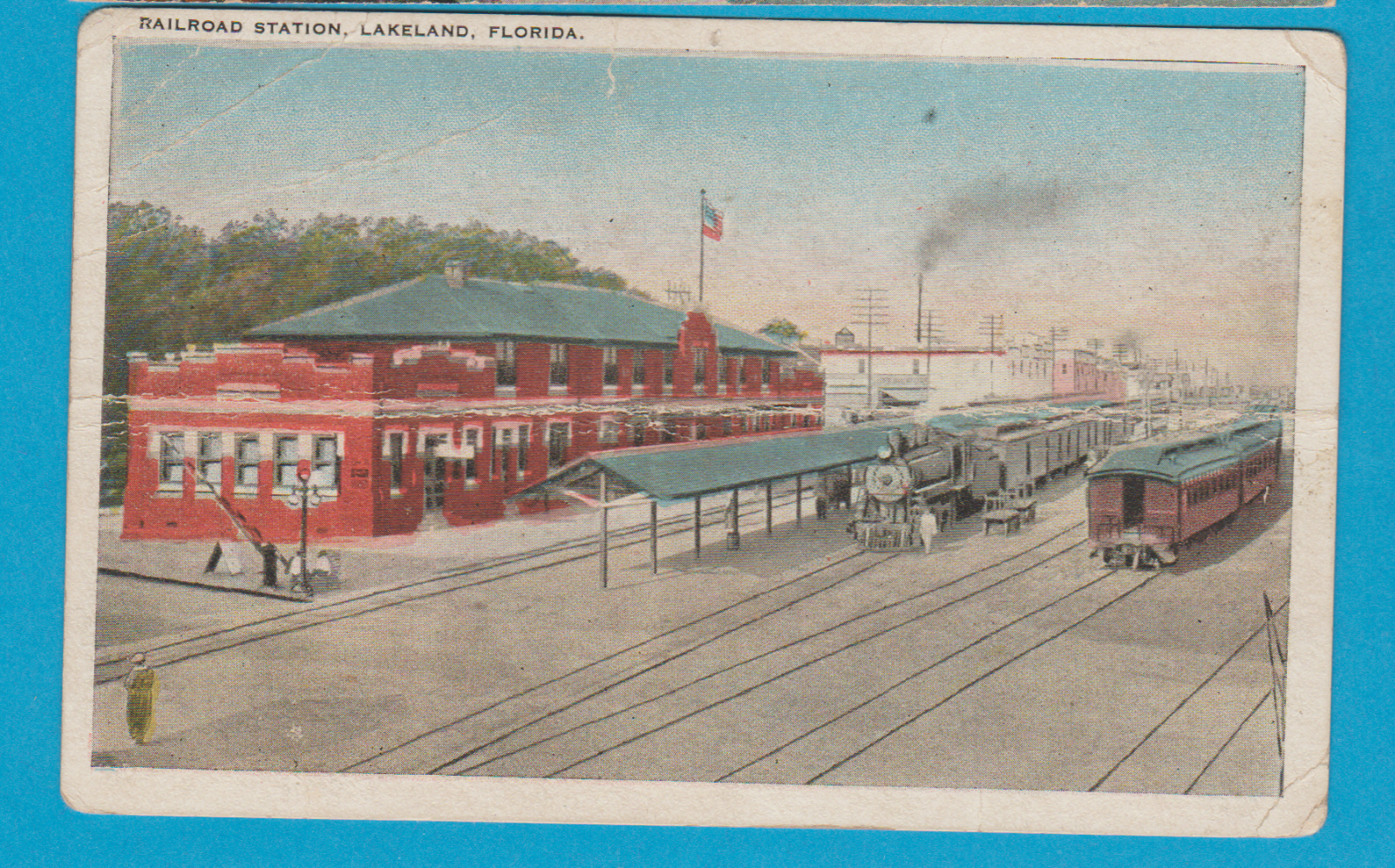 Title (ebay affiliate link): Lakeland, Fl/ Railroad Station/ trains/ bldgs/ non-linen postcard