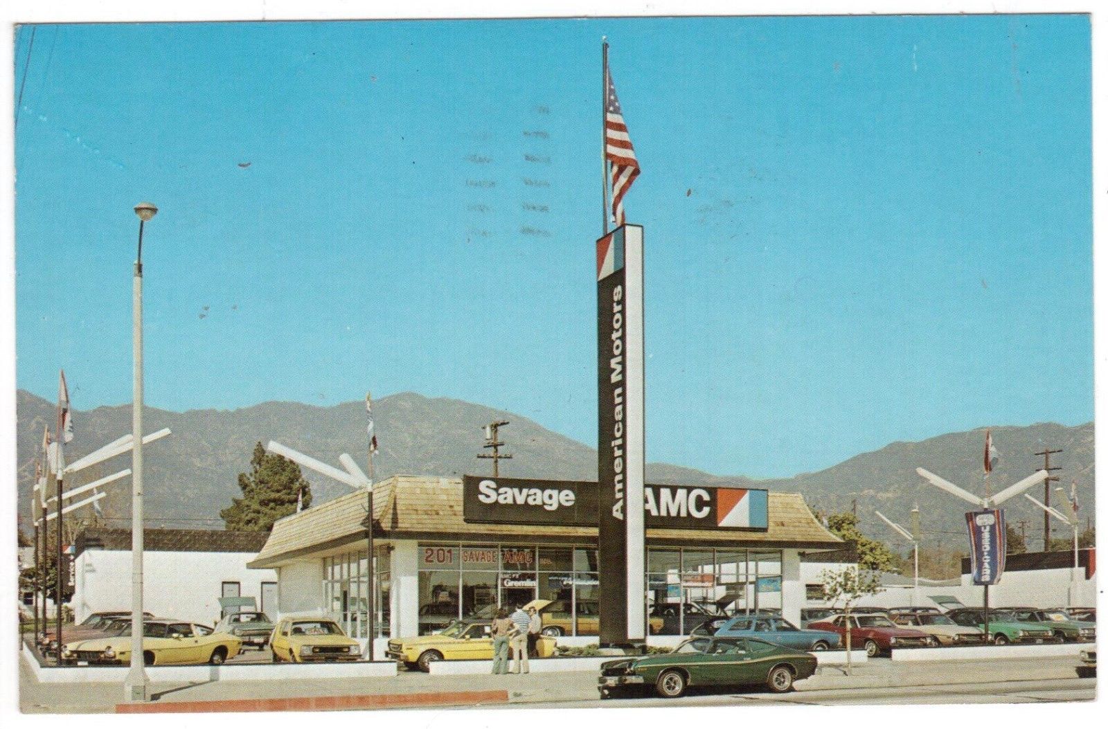 Title (ebay affiliate link): 1974 SAVAGE MOTORS AMC DEALERSHIP CAR SALES LOT MONROVIA CALIFORNIA POSTCARD