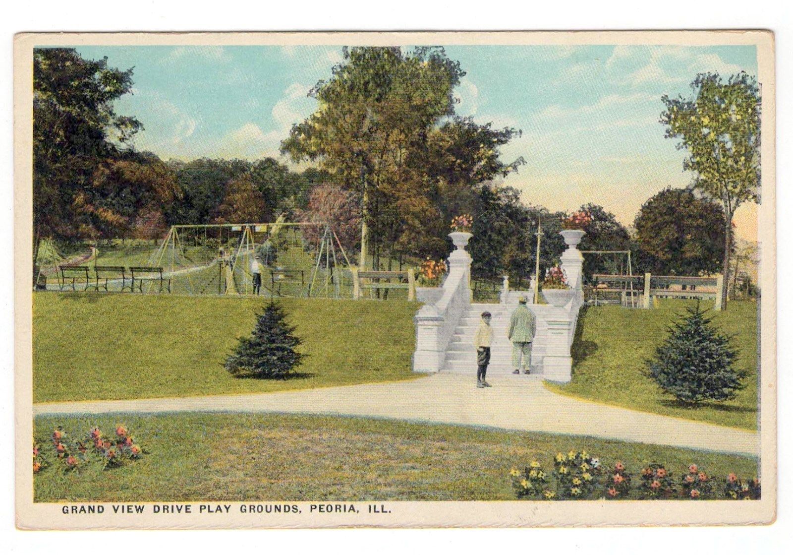 Vintage Postcard Grand View Drive Play Grounds Peoria IL