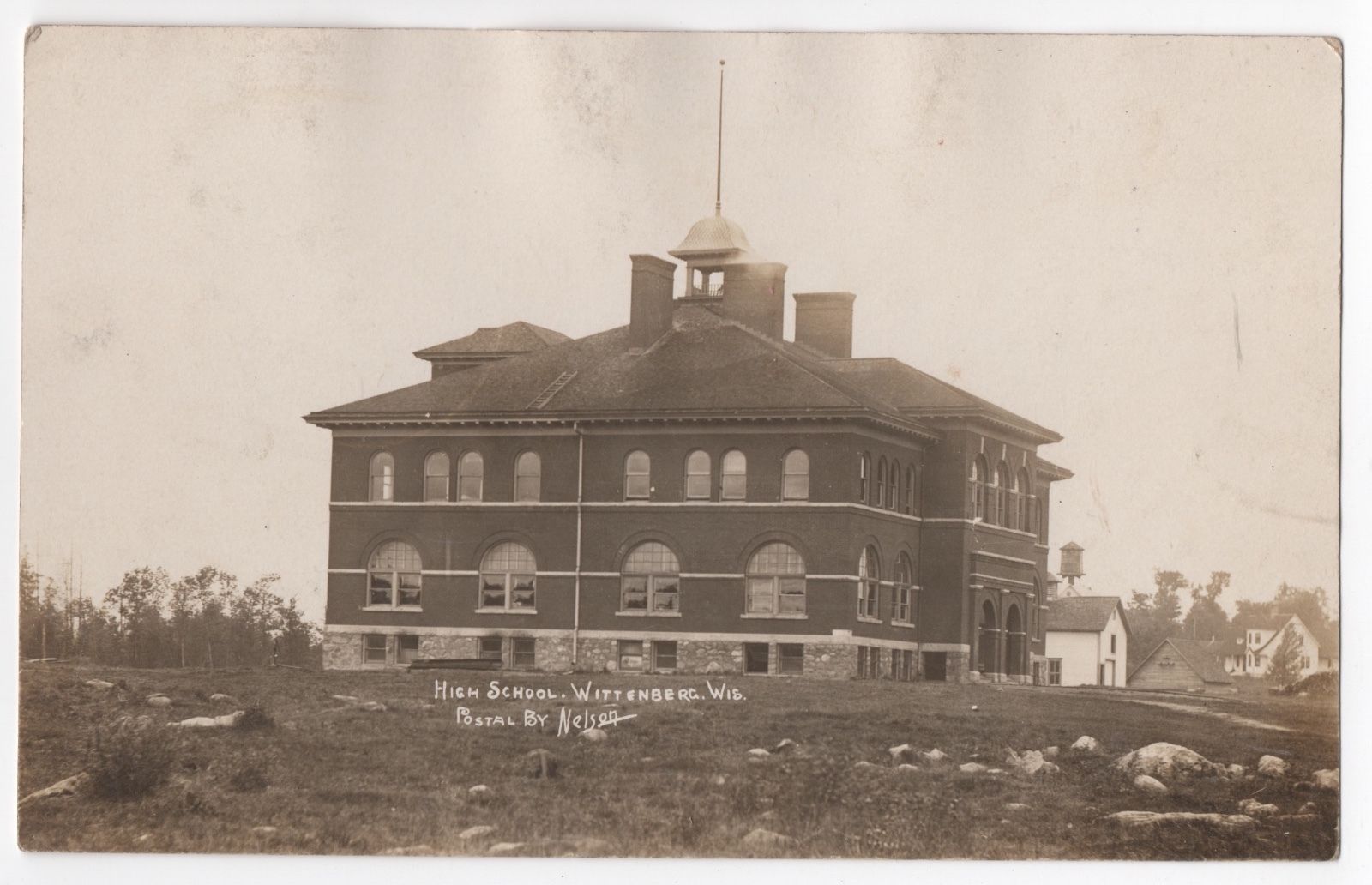 NELSON RPPC~1908~Wittenberg,WI~HIGH SCHOOL~bet Wausau/Shawano/Keshena,Wisconsin