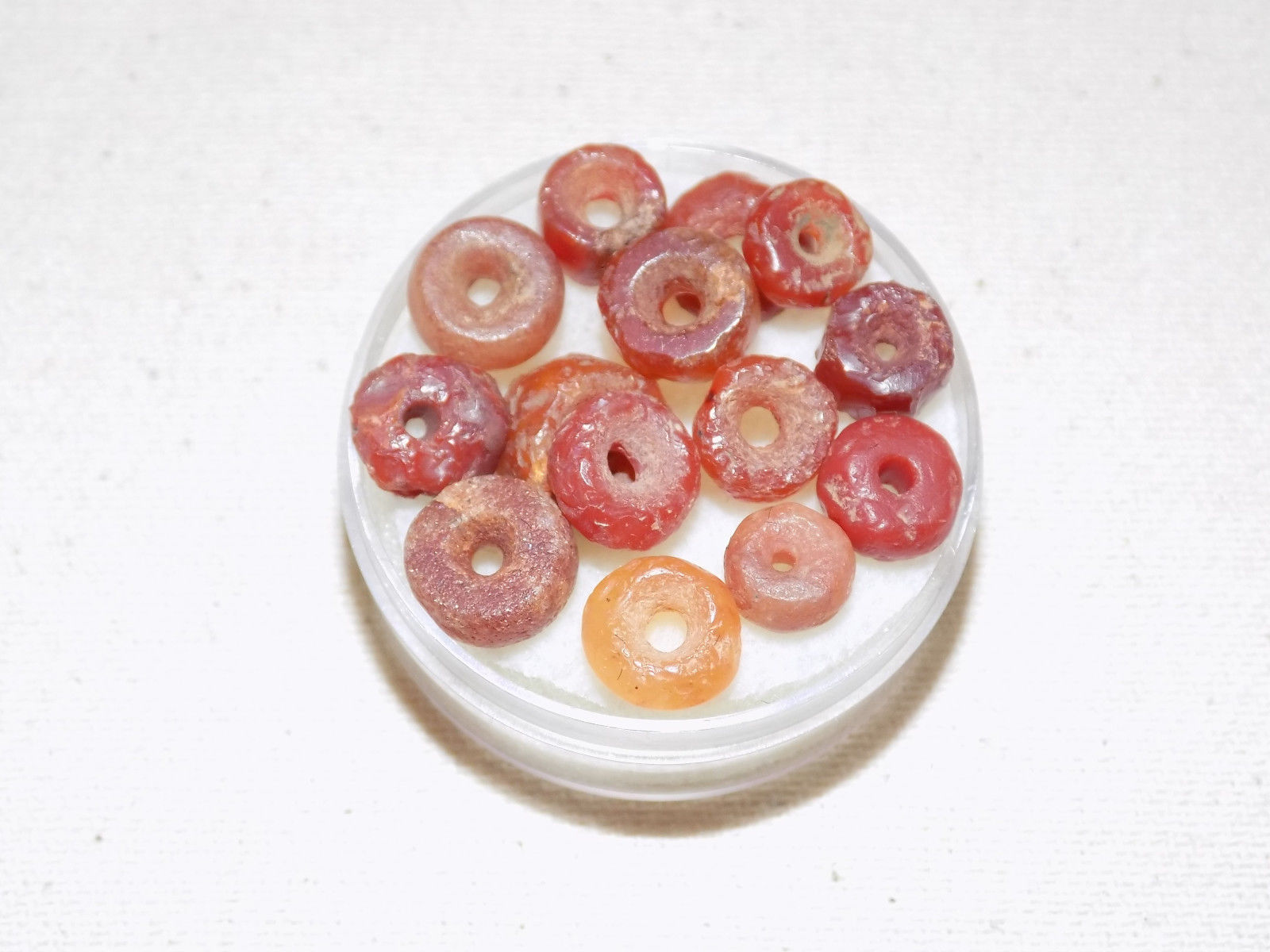 Title (ebay affiliate link): Pre-Columbian Taino Red Jasper Bead Collection, Set of 14 Disc Beads