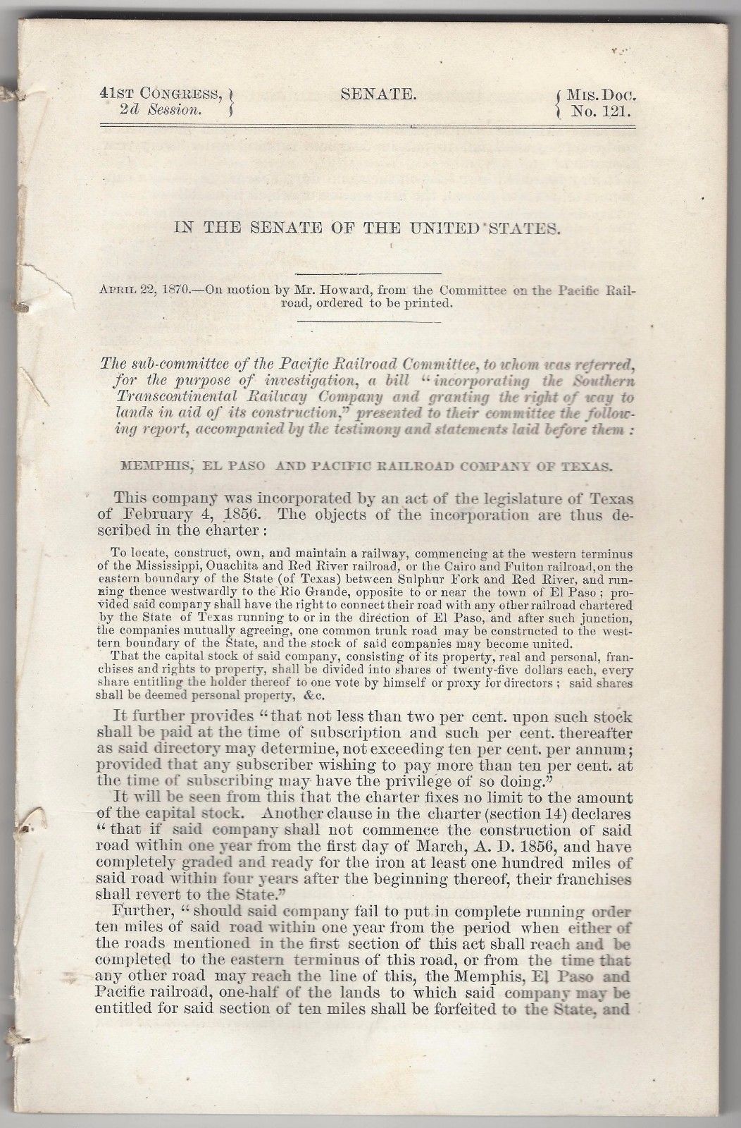 Title (ebay affiliate link): 1870 Report The Southern Transcontinental Railway Company Texas