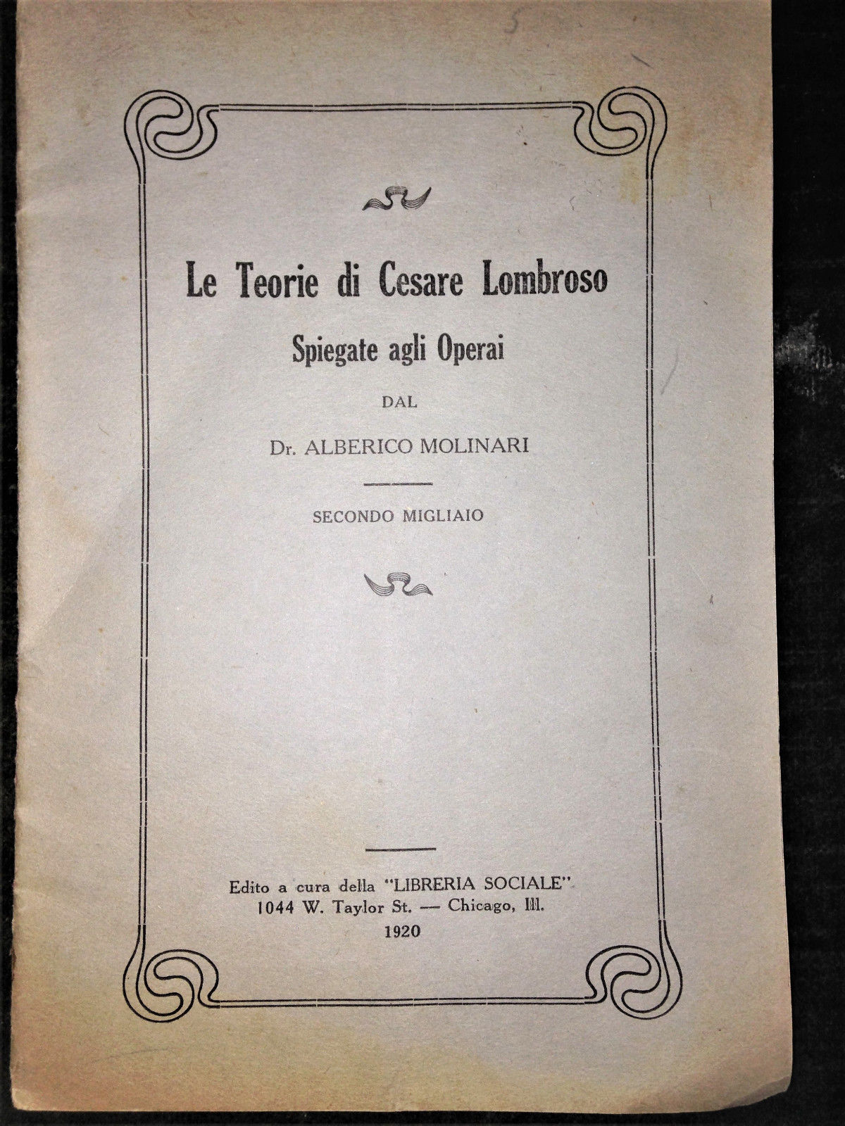 Title (ebay affiliate link): Le Teorie di Cesare Lombroso Spiegate agli Opreai 1920 Alberico Molinari Anarchy