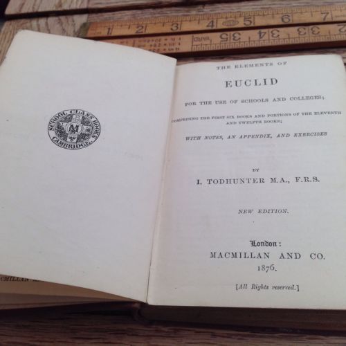 Title (ebay affiliate link): Antique Mathematics Book, The Elements Of Euclid, MacMillan 1876
