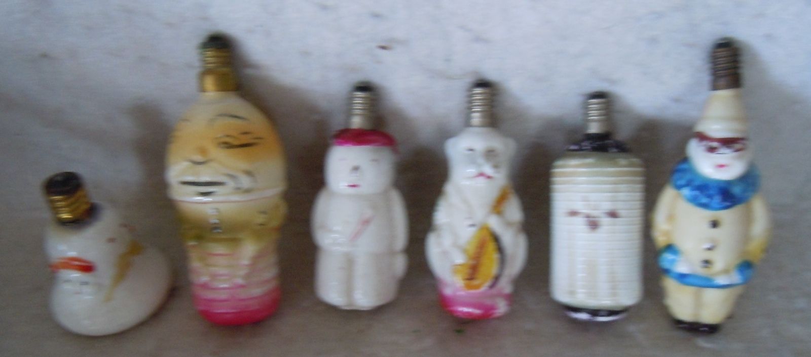 VINTAGE MILK GLASS FIGURAL XMAS LIGHT BULBS