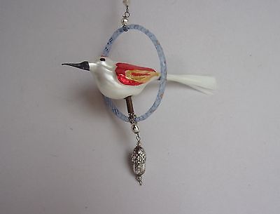 Vintage BLOWN GLASS BIRD IN A GLASS RING CHRISTMAS ORNAMENT