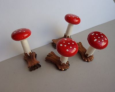 4 VINTAGE GERMAN CLIP ON SPUN COTTON MUSHROOMS CHRISTMAS ORNAMENTS
